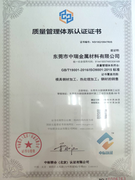 中瑞-質量體系認證證書