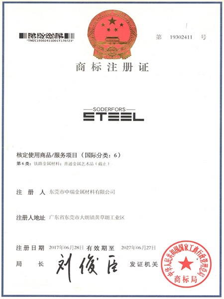 steel商標注冊證-中瑞